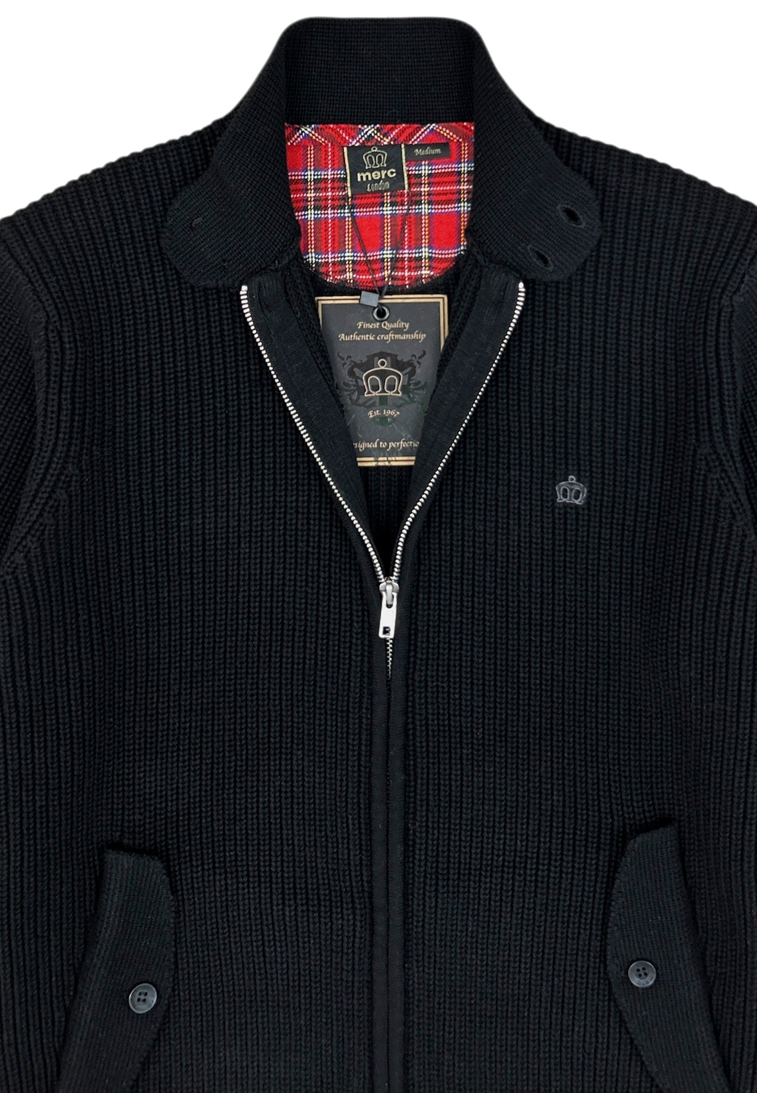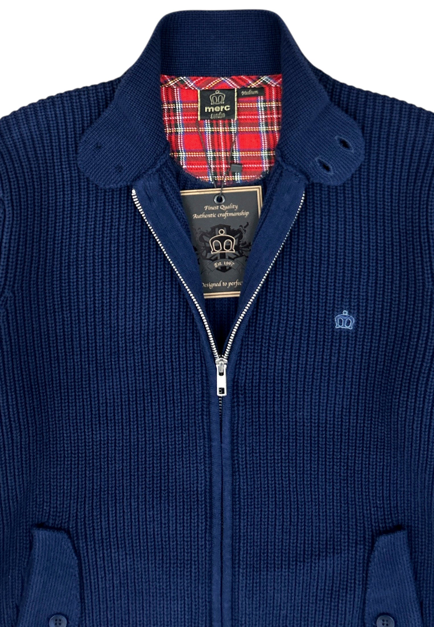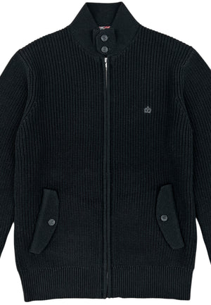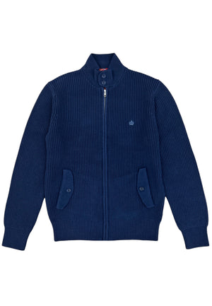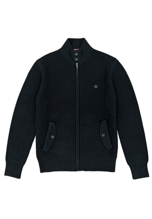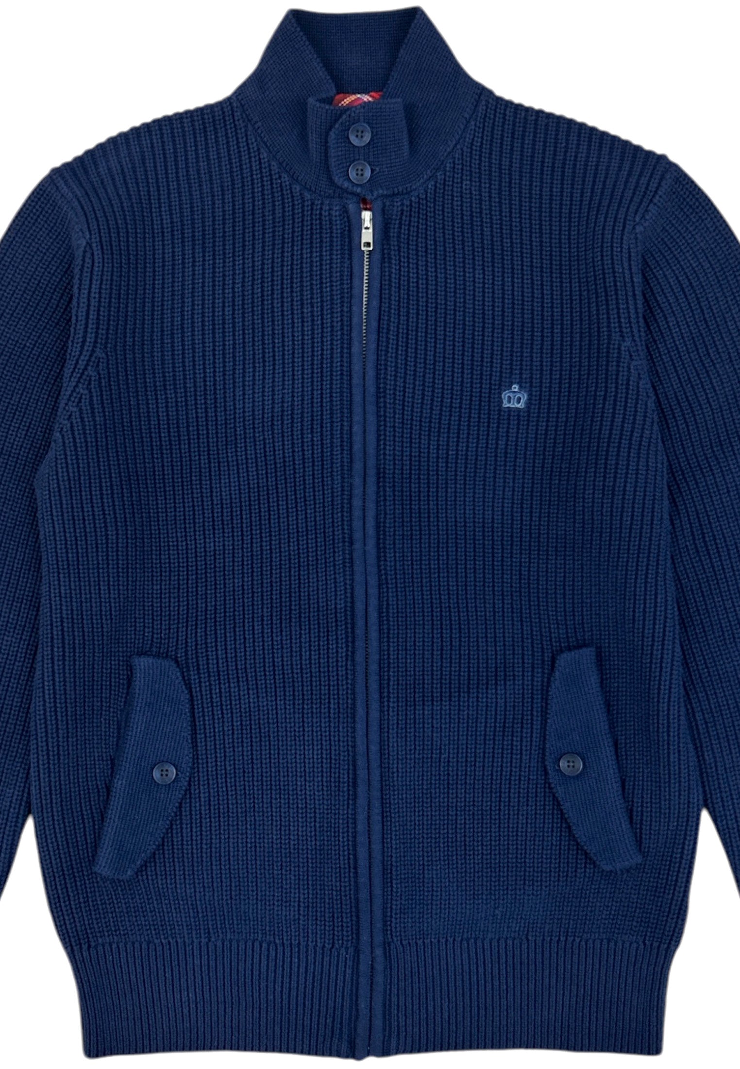 A modern classic with true Mod heritage. Crafted from a heavy cotton rib for warmth and structure, this zip-through knit features a clean silhouette with a buttoned collar and twin flap pockets. Finished with the signature crown embroidery — subtle, sharp, and unmistakably British.