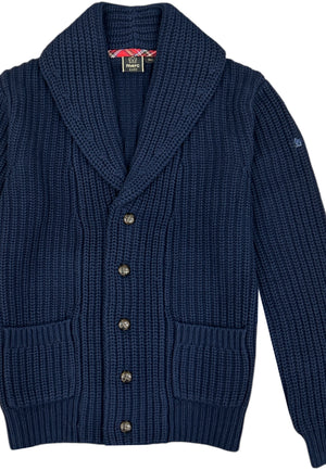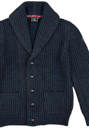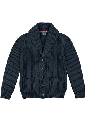 A cold-weather classic with laid-back sophistication. This heavy ribbed knit features a shawl collar, button-through front, and deep patch pockets for a timeless, rugged look. Effortlessly blending comfort and style, it’s an easy layer for crisp days and cool nights.
