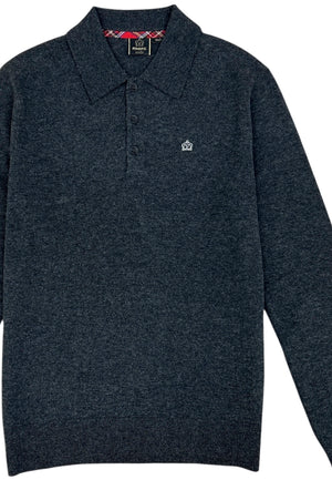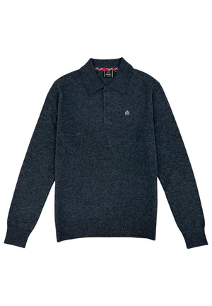 A Merino wool bend long sleeve polo available in Navy, Tan, Grey Marl or Black that is a perfect layering piece this season. A classic merc knit, buttoned up that will never go out of style.