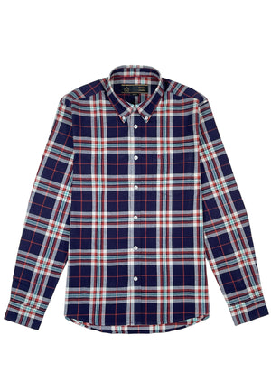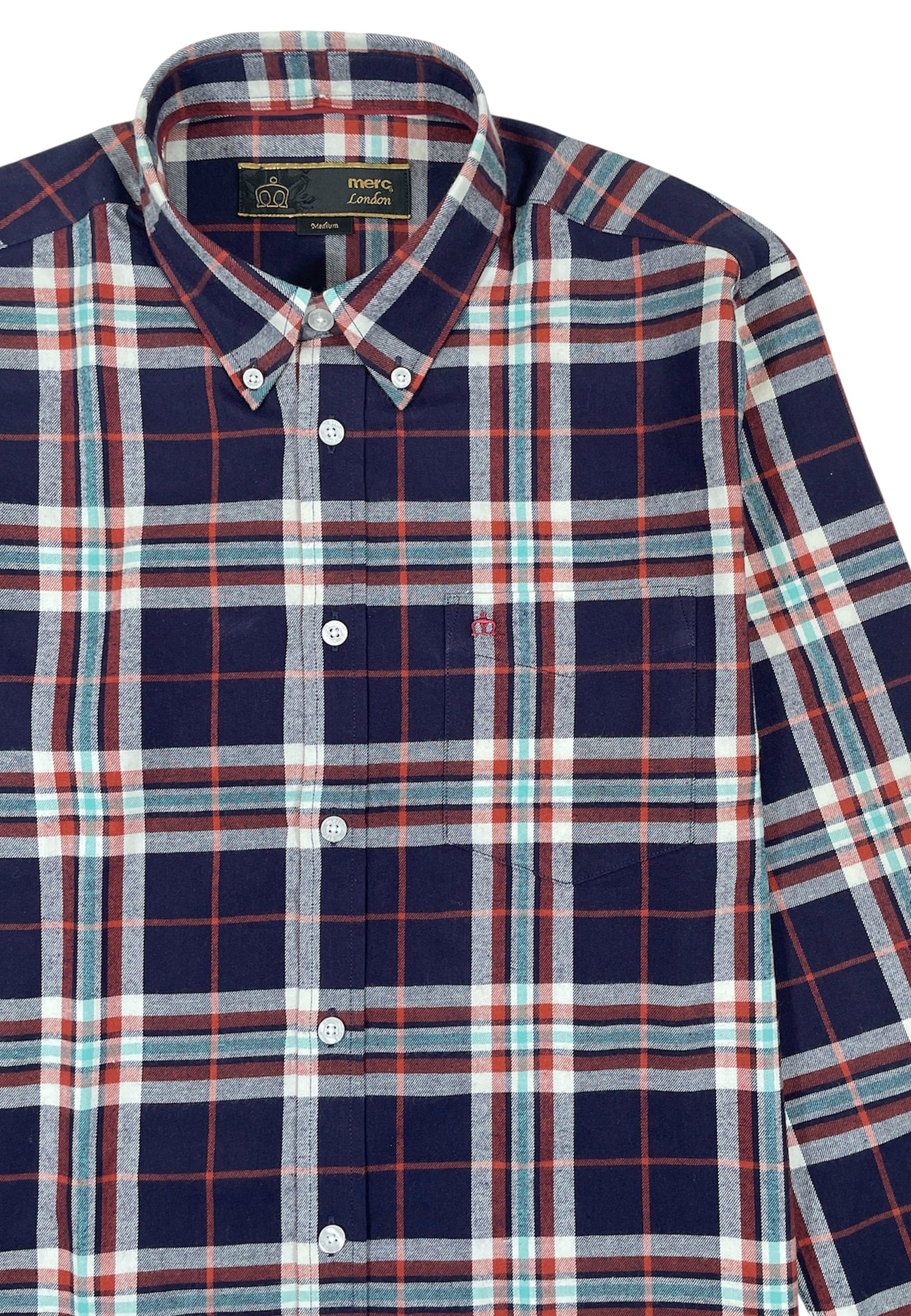 A classic check shirt with a clean, modern edge. Crafted from soft brushed cotton, it features a button-down collar, chest pocket, and contrast check detailing. Easy-going yet refined — perfect for layering or wearing solo.