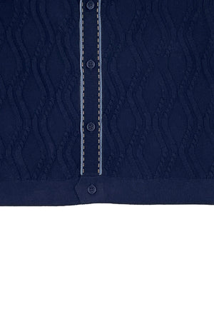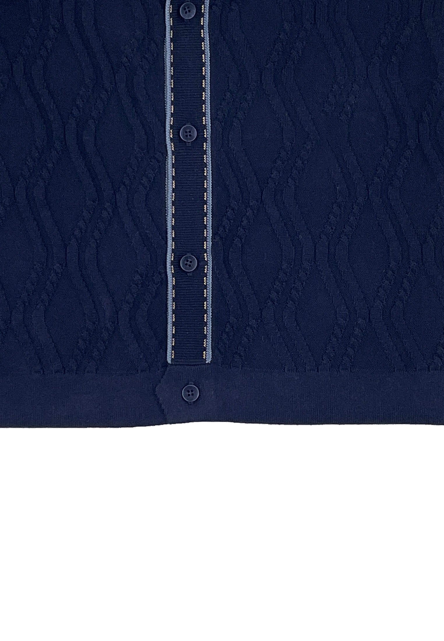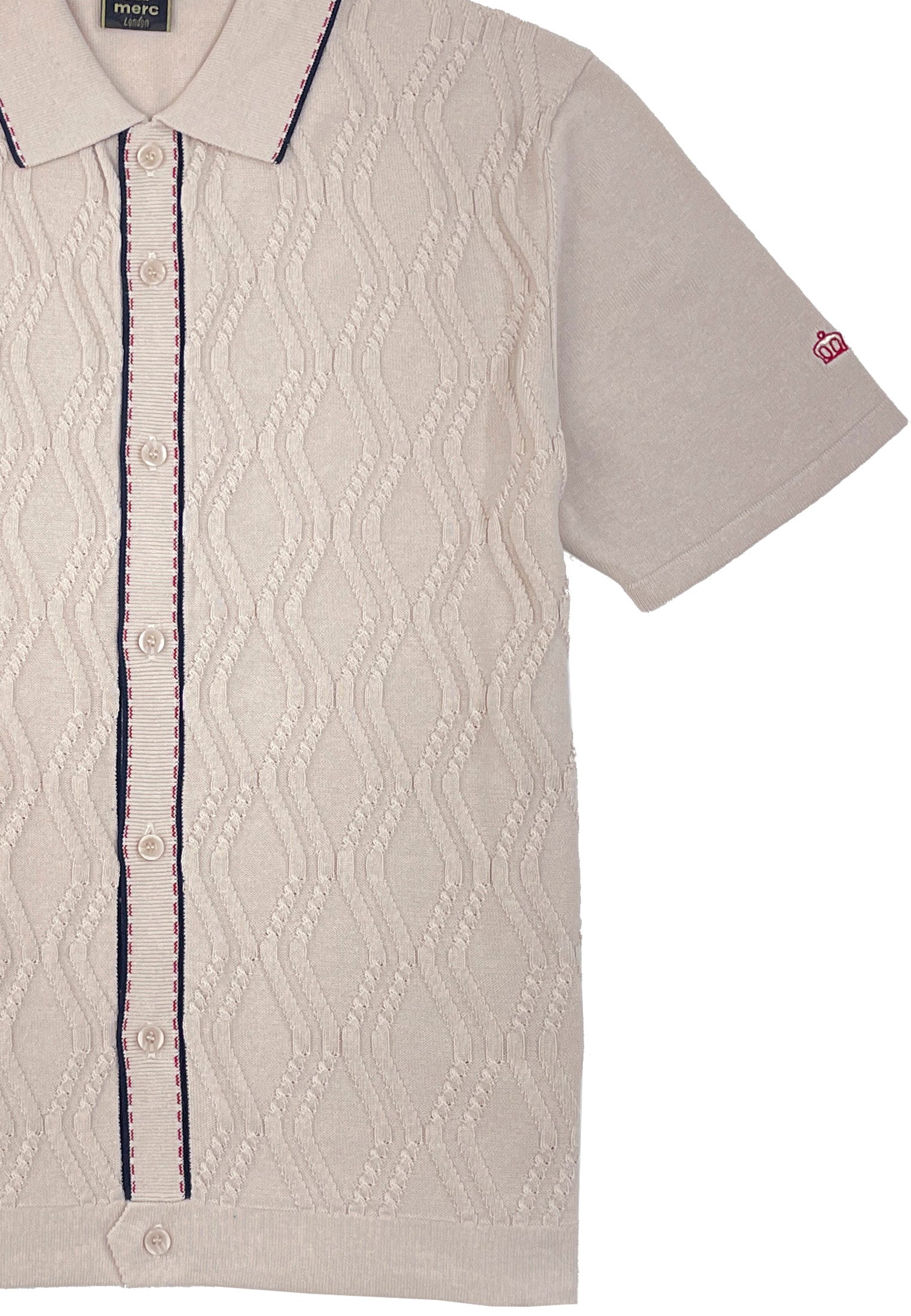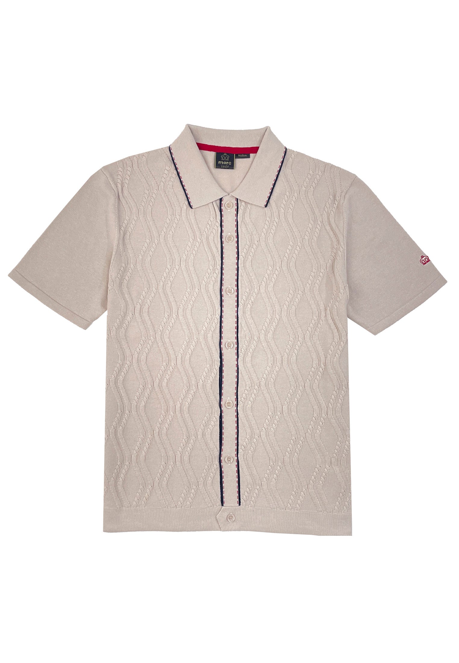 The Bryan Cable Knit Shirt blends retro charm with refined texture. Featuring a classic cable knit body and subtle stipple-tipped detailing on the collar and cuffs, it nods to vintage styling while staying sharp and modern. A standout piece with timeless attitude.